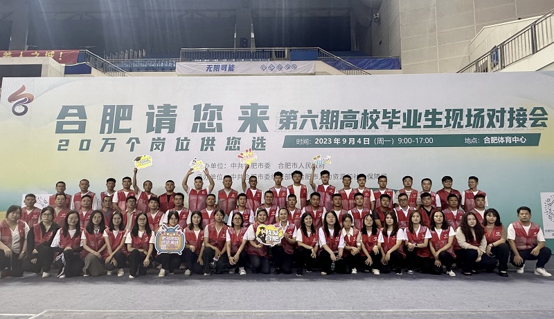 9月4日,“合肥请您来,20万个岗位供您选”第六期高校毕业生现场对接会在市体育中心举行。合肥热电团委积极响应号召,提前谋划,精心组织,招募65名合热青年组成志愿者队伍,助力现场对接会顺利进行。